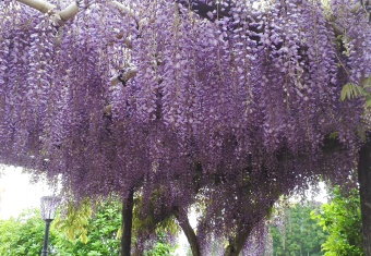 本堂前の東屋に腰をかけ、お庭を眺めて季節の移ろいを楽しむことができます。自然を感じ、静かな環境に身を置いていると心が癒されます。近隣住民の方々のお散歩のお休みどころです。五月は藤が綺麗に咲きます。季節を感じることが少なくなった時代ですが、ここでは日本人の自然を感じ取る感性が呼び起こされます。