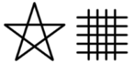危険な海でのお仕事に、このマークが使われています。三重県の志摩地方では昔から、海女さんの魔除けに使われている九字で、ドーマンセーマンと呼ばれ、星形の印は一筆で書けることから魔物が入ってこられない、元の位置に戻ってくるから「無事に帰ってくるように」の意味と、格子状の印は「多くの目で魔物を見張る」といった意味をもっています。