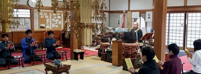 智弘院では日蓮宗の法華経修行と作法を学び、常に学ぶ心を持ち続け、前向きに取り組む姿勢を養うための新入社員研修、管理職研修を実施しています。 仏教を通じての社員教育は、経営コンサルタントでは対応しきれない主に心の分野となります。例えば「四恩」の教えでは、社会と自分との関係や今の自分がある理由などを学び、感謝と謙虚さを持ち、企業や社会に貢献できる人材を育てることを目的とします。 →社員研修感想文